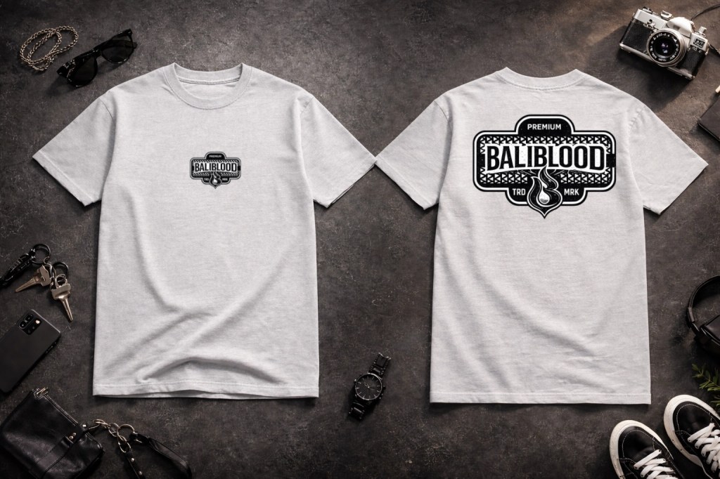 Desain ini merepresentasikan attitude, kebebasan, dan karakter kuat khas BALIBLOOD — clean di depan, statement di belakang.